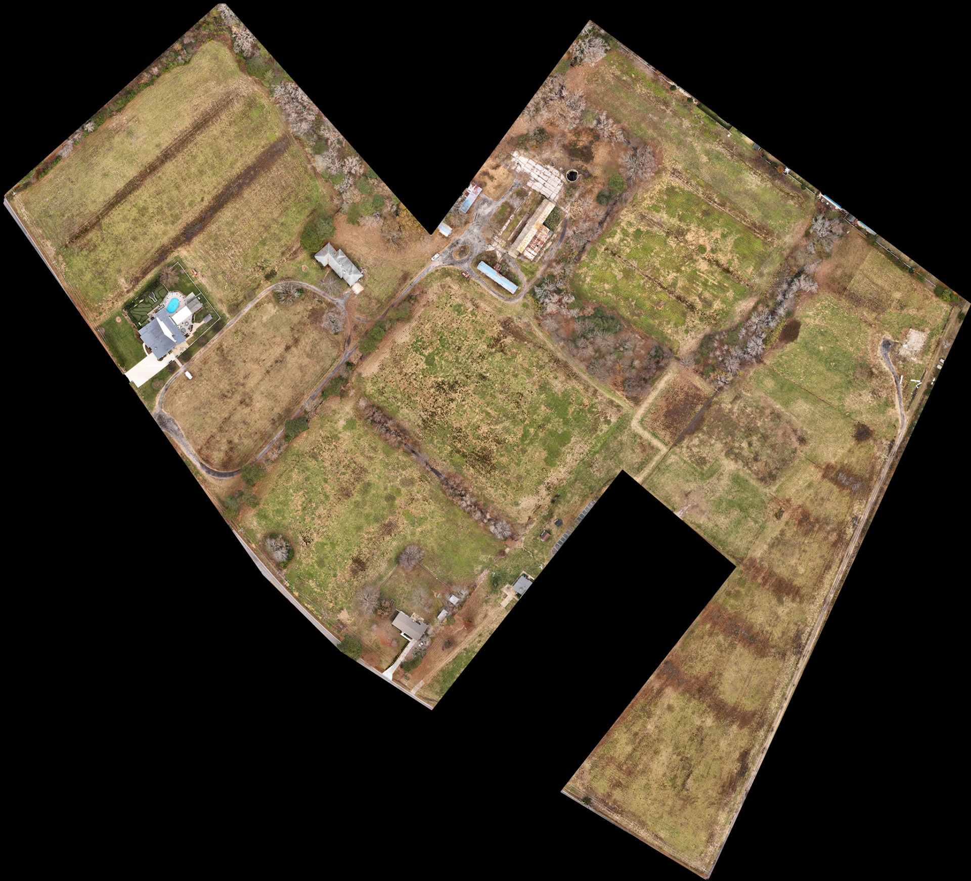 Construction maps can be provided as Geo TIFF Map, JPG Map, or pdf formats. Analysis can include elevation, elevation contours (.shp file), elevation DEM, 3-D rendering, point cloud (.las file), distance, area, surface profile, and volumetric analysis. Resolution up to 0.59/in. Centimeter level geographic positioning accuracy achieved through DJI RTK module and a RTK network using ground control points.